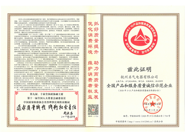 2020年315產(chǎn)品和服務質(zhì)量誠信示范企業(yè)