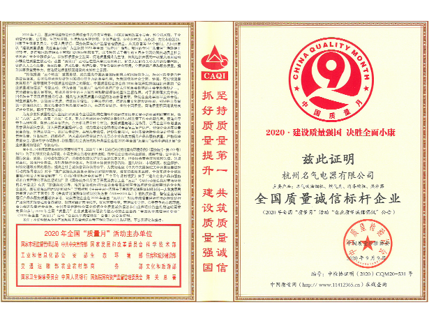 2019年度全國產(chǎn)品和服務質(zhì)量誠信示范企業(yè)