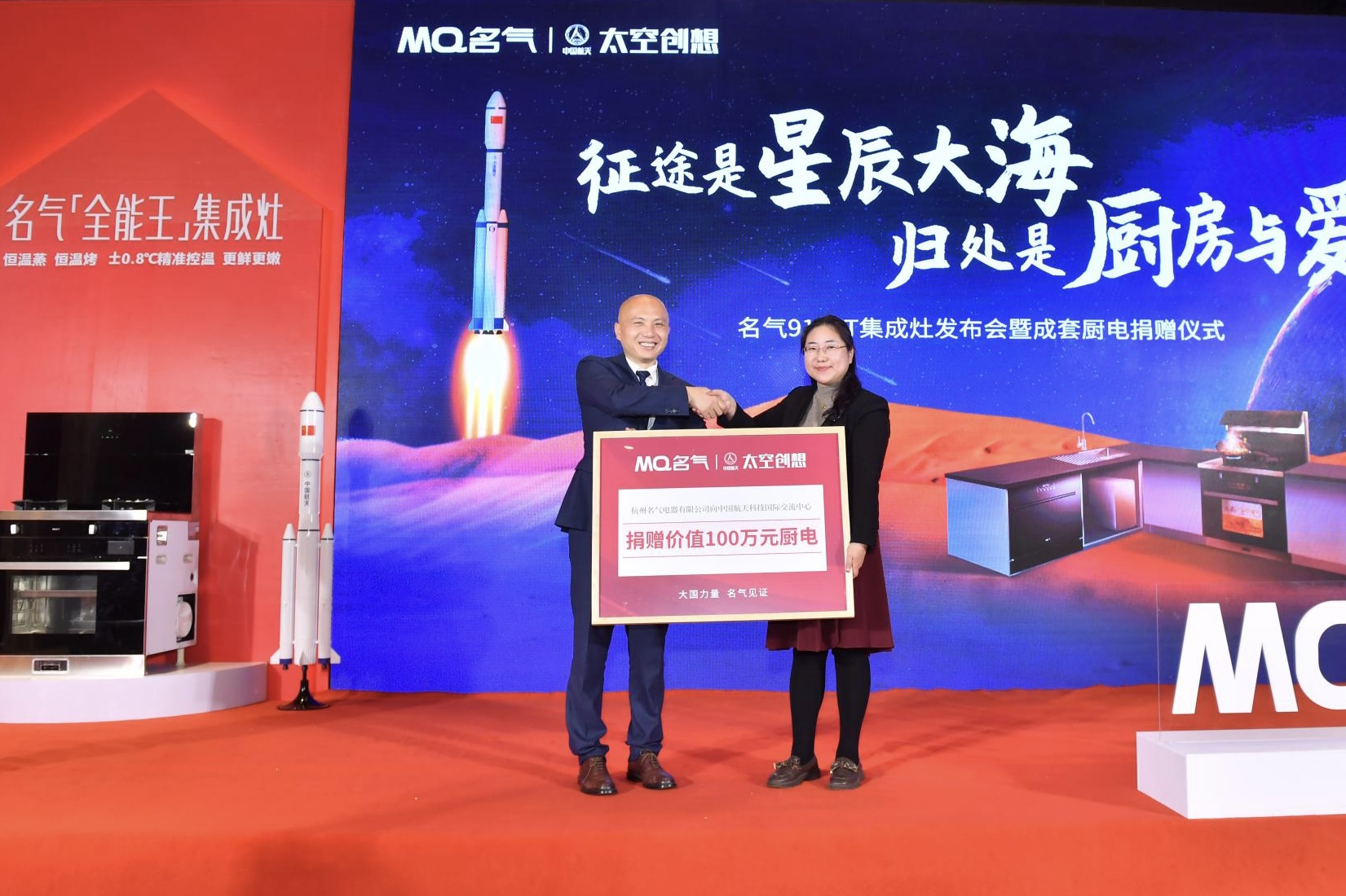 2022年2月26日,名氣電器攜手中國航天科技國際交流中心在海南文昌舉行了新品捐贈儀式,為中國航天的科研人員提供名氣廚電產(chǎn)品的支持,支持中國航天事業(yè)發(fā)展。名氣電器總經(jīng)理朱忠民、中國航天科技國際交流中心文創(chuàng)事業(yè)部領(lǐng)導(dǎo)及名氣電器相關(guān)領(lǐng)導(dǎo)嘉賓共同出席捐贈儀式。